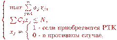 Для создания технологических структур из РТК необходимо приобрести n PTK для участка. Для этого выделен фонд в сумме N рублей. Стоимость РТК j-ro типа — Cj, а производительность — aj, j = 1,n. Требуется выбрать РТК, обеспечивающие максимальную суммарную производительность в пределах установленного денежного лимита N. Математическая модель: