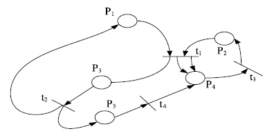 N = (Р, Т, F, Н, μ0), где Р = {Р1, Р2, Р3, Р4, Р5},