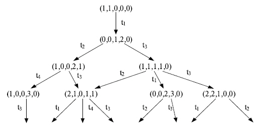 Фрагмент графа достижимости для сети Петри приведен на рис. 13.4.