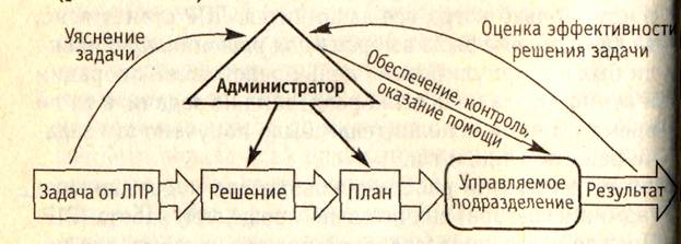 В этом отношении работа руководителя подразделения (администратора) значительно проще, чем работа ЛПР. Прежде всего, подразделение предназначается для решения вполне определенных, присущих его специфике задач. Задачи руководителю подразделения поступают в готовом виде извне, от руководителя организации. Для решения задач руководителю подразделения ЛПР передает в распоряжение определенные ресурсы. После уяснения задачи руководитель подразделения принимает решение на ее выполнение и планирует действия конкретных исполнителей — составляет план. В решении и плане отражаются особенности того, кто, когда, где, каким наилучшим способом и с помощью чего будет решать задачу в конкретных условиях обстановки. Если поставленная задача не требует для ее решения очень большой части имеющихся ресурсов, то ЛПР делегирует руководителю подразделения полномочия действовать более самостоятельно. Однако, чтобы распорядиться значительной их частью или всем ресурсом, руководитель под разделения должен согласовать свои решения и будущие действия с ЛПР, руководителем организации. При этом для доказательства верности собственных решений, для повышения убедительности своих доводов и предложений руководитель подразделения использует измеримые результаты и критерии для оценки эффективности oперации. После завершения операции и получения фактических результатов руководитель подразделения докладывает ЛПР результаты оценки фактической эффективности решенной им задачи.