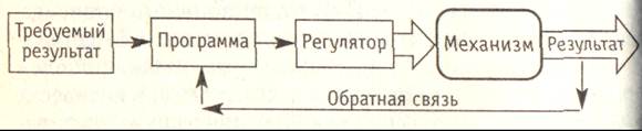 Из методических соображений и для полноты изложения на рис. 3.3. представлен процесс автоматического управления работой механизма. Видно, что автоматический регулятор никаких «решений» не принимает, а лишь выполняет предписанную программу отработки требуемого результата. Для отслеживания этой цели автомат снабжен обратной связью. Автомат не способен ни на какие «осознанные выборы», он принципиально не может породить никаких управляющих воздействий, кроме тех, которые предусмотрены заложенной в него программой. Если захотим изменить совокупность управляющих воздействий автомата, то придется пересмотреть его программу. Поэтому в рамках данного курса, который посвящен проблемам управления и разработки решений, вопросы теории автоматического управления обсуждаться не будут.