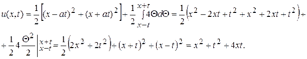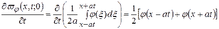 Подставив (28) и (29) в решение (24) окончательно получим решение задачи Коши для однородного волнового уравнения