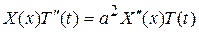 Будем искать нетривиальные частные решения уравнения (55), удовлетворяющие условиям (52), в виде произведения двух функций, зависящих только от одного аргумента X=X(x) и T=T(t), а именно