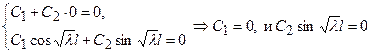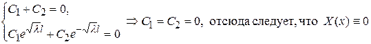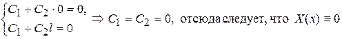 постоянная С 2 не может быть равной нулю, поскольку в этом случае, мы получим тривиальное решение задачи (61), (62) - Х (х) ≡ 0. Поэтому для того, чтобы равенство