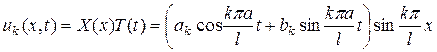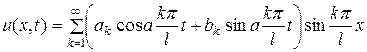 Определяя постоянные ak и bk так, чтобы сумма ряда (68) удовлетворяла и начальным условиям (54), приходим к равенствам