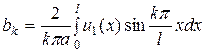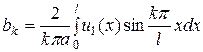 в ряд Фурье по синусам в интервале (0, l). Коэффициенты этих разложений вычисляются по известным формулам