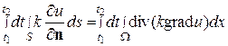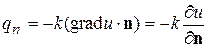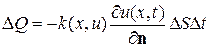 где n – нормаль к площадке, направленная в сторону передачи тепла, k (x,u) - коэффициент внутренней теплопроводности, u (x,t) – температура тела в точке
