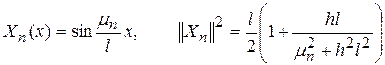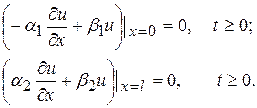 , если на поверхности х= 0 поддерживается постоянная нулевая температура, а на другой поверхности x=l происходит конвективный теплообмен с окружающей средой, имеющей нулевую температуру.