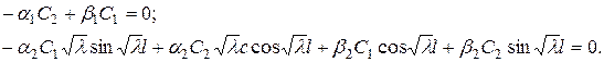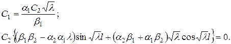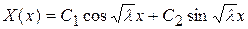 Из второго уравнения системы следует, что, если С 2 =0, то и С 1 тоже будет равна нулю. Следовательно, X (x) ≡ 0., поэтому нетривиальные решения уравнения (89) будут при условии, что