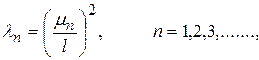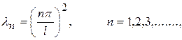 Таким образом, задача Штурма-Лиувилля (89), (90) имеет нетривиальные решения только при определенных, собственных значениях