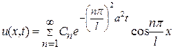, если на поверхностях x=0 и l=0 этого слоя происходит теплообмен с окружающей средой, имеющей нулевую температуру. Требуется найти решение однородного линейного параболического уравнения