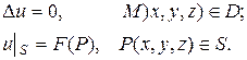 функцию и (М), которая удовлетворяла бы в области D уравнению Лапласа и принимала бы на поверхности S заданные значения F(P). Математически это можно записать следующим образом: