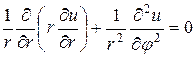 Рассмотрим теперь краевые задачи для уравнения Лапласа внутри круга и вне его. Пусть существует область, представляющая собой круг радиуса R. Запишем двухмерное уравнение Лапласа в полярных координатах, полагая, что