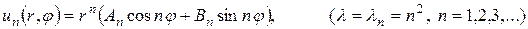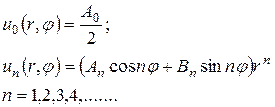 Таким образом, можно построить частные решения уравнения Лапласа в круге и вне его: