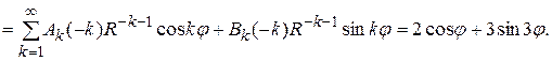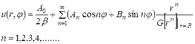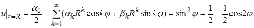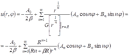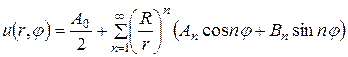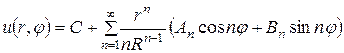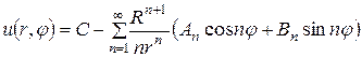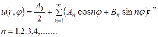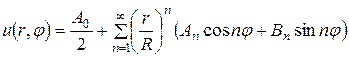 (уже разложена в ряд Фурье). Так как уравнение Лапласа надо решить вне круга