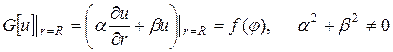 Пример 18. Найти решение уравнения Лапласа для внутренней части круга радиуса R, удовлетворяющее краевому условию