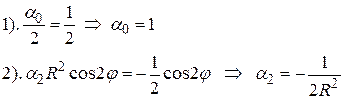 Теперь сравним коэффициенты при синусах и косинусах с одинаковыми аргументами и при свободном члене в левой и правой частях полученного равенства (18.2)