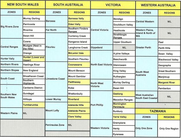 Zones. Многие из традиционных винодельческих областей Австралии включены в эти новые образования. Например, Баросса - зона в пределах штата Южная Австралия.
