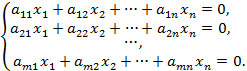 Отсюда следует, что множество всех решений однородной системы из т уравнений с п неизвестными является подпространством пространства