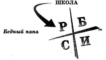 — Я ждал, когда ты задашь мне этот вопрос, — сказал он. — Мне тоже больно смотреть на это, и именно поэтому я хотел, чтобы ты увидел это до того, как станешь намного старше, — богатый папа взял свой блокнот, нарисовал квадрант денежного потока и продолжил: — Ты только что перешел в старший класс. Но скоро тебе предстоит принимать очень важные решения относительно того, кем ты будешь, когда вырастешь, если ты их уже не принял. Я знаю: твой отец хочет, чтобы ты поступил в колледж, а потом устроился на высокооплачиваемую работу. Последовав его совету, ты пойдешь в этом направлении, — и богатый папа провел стрелку в направлении стороны Р и С квадранта. — А если будешь слушать меня, то будешь учиться, чтобы стать человеком с этой стороны квадранта, — и он провел стрелку в направлении стороны Б и И квадранта.