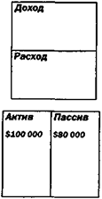 Богатый папа также говорил мне: "Путаница возникает оттого, что принятый метод бухгалтерского учета позволяет нам указывать одновременно и активы, и пассивы в колонке для активов". Затем для иллюстрации сказанного он рисовал картинку, говоря: "Вот откуда возникает путаница".