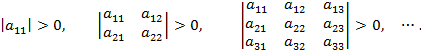 Действительная квадратичная форма является положительно определенной тогда и только тогда, когда все главные миноры ее матрицы положительны: