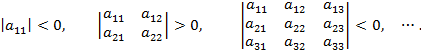 Действительная квадратичная форма является отрицательно определенной тогда и только тогда, когда знаки главных миноров ее матрицы чередуются, причем