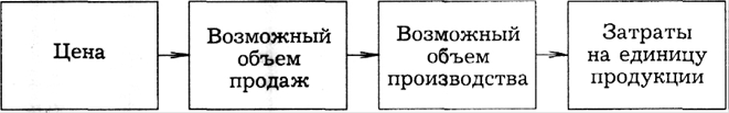 При рыночной организации сбыта продукции уровень цены определяет возможный объем продаж и, следовательно, возможный масштаб производства. Между тем и экономическая теория, и бухгалтерский учет признают, что от масштаба производства прямо зависит величина удельных затрат на производство единицы продукции. При росте определенных масштабов выпуска снижается сумма постоянных затрат, приходящаяся на одно изделие, и соответственно величина средних затрат на его выпуск.
