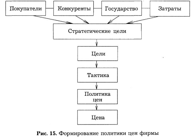 Между тем процедура разработки ценовой политики, а затем и определения на ее основе конкретных уровней цен построена как раз на сведении воедино различных факторов, способных повлиять на условия сбыта и прибыльность операций фирмы при тех или иных вариантах цен ее продукции (рис. 15).
