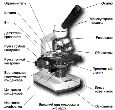 В учебных лабораториях обычно используют световые микроскопы, на которых микропрепараты рассматриваются с использованием естественного или искусственного света. Наиболее распространены световые биологические микроскопы: БИОЛАМ, МИКМЕД, МБР (микроскоп биологический рабочий), МБИ (микроскоп биологический исследовательский) и МБС (микроскоп биологический стереоскопический). Они дают увеличение в пределах от 56 до 1350 раз. Стереомикроскоп (МБС) обеспечивает подлинно объемное восприятие микрообъекта и увеличивает от 3,5 до 88 раз.