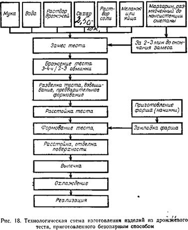 Безопарное тесто. Безопарным способом приготавливают тесто из муки с хорошей клейковиной и для получения теста слабой консистенции с малым количеством сдобы (тесто для пирогов, оладий, блинов и т. д.). При безопарном способе все полагающиеся по рецептуре продукты замешивают в один прием (рис. 18).