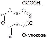 2. Секоиридоиды группы олеуропеина ( имеют двойную связь между С8- С9).
