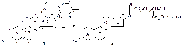 2. Фуростаноловые (где кольцо F раскрыто, и боковая цепь содержит глюкозу).