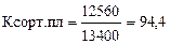 - стоимость продукции всех сортов к возможной стоимости по цене высшего сорта