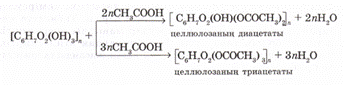 Целлюлозаға сірке кышқылымен (немесе сірке ангидридімен) күкірт қышқылы қатысында әсер етіп, целлюлозаның диацетатын немесе триацетатын алуға болады: