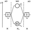 | Рис. 4.4. Схема образования МО. | Рис. 4.5. Энергетическая схема АО и МО в системе из двух атомов водорода. |
