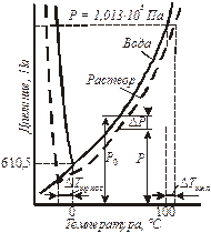 Наглядно следствия из закона Рауля объясняются изменениями на диаграмме состояния воды и раствора (рис. 10.1).