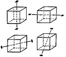 Рис. 18.2. Некоторые из плоскостей симметрии куба. | Рис. 18.3. Некоторые из осей симметрии куба. |