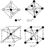 Рис. 18.14. Взаимная координация ионов в кристаллах NaCl и CsCl. | Рис. 18.15. Структура кристаллов NaCl и CsCl. |