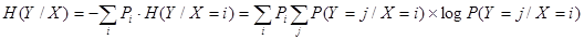 причем каждое слагаемое берется с весом, равным вероятности появления соответствующего условного распределения, т.е. вероятности Рi. Другими словами, можно сделать вывод, что для выборки величина Н(Y/Х) - это обычное среднее взвешенное значение условных энтропий.