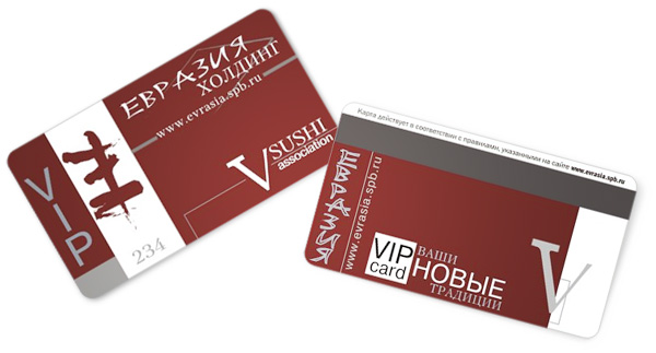 Дисконтная программа сети позволяет экономить нашим гостям средства при посещении наших заведений. Все карты действительны во всех ресторанах «Евразия» в Киеве, Санкт-Петербурге, Москве и Казани. Картой могут воспользоваться не только её владелец, но и его друзья, родственники и т.д., так как карты действительны на предъявителя. В сети предусмотрены карты номиналом 5%, 10%, 15%. С другими скидками, акциями не суммируется. Утерянные карты не восстанавливаются.