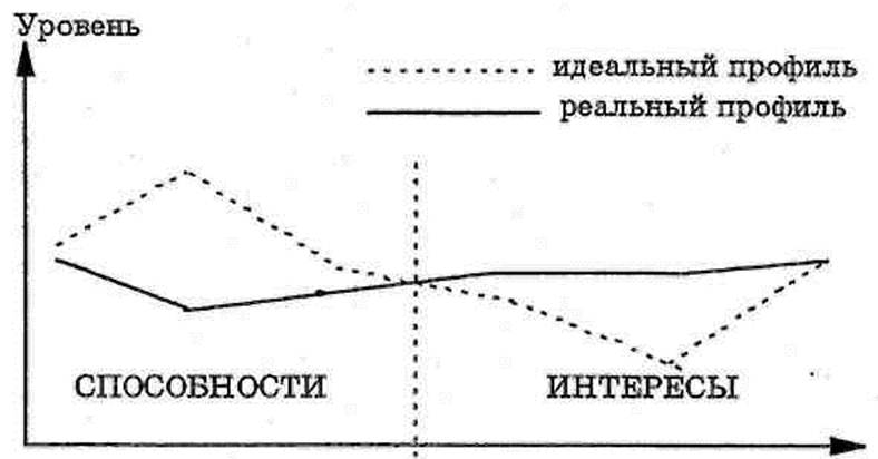 Рис. 7 Схема сравнения профилей идеального и реального исполнителя в профконсультационной диагностике
