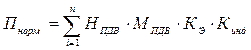 где НПДВ – базовый норматив платы за выброс 1 тонны i -го загрязняющего вещества в пределах допустимых нормативов выбросов (первый базовый норматив), руб/т (приложение 13, табл. 1); Мi – фактический выброс i -го загрязняющего вещества, т/год; МПДВ – предельно допустимый выброс i -го загрязняющего вещества, т/год; КЭ – коэффициент экологической ситуации и экологической значимости атмосферы в данном регионе (приложение 13, табл. 5); Кинд – коэффициент индексации.