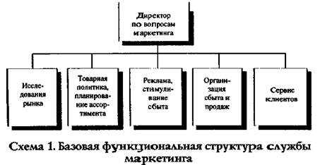 Классическая функциональная организационная структура службы маркетинга представлена на схеме 1.