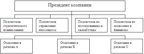 Организация разбивается на департаменты, каждый из которых оперирует на отдельном целевом рынке, причем департаментам предоставляется значительная автономия от центрального офиса компании. В литературе подобные автономные департаменты получили название дивизионов. Руководитель дивизиона уполномочен решать все вопросы (как оперативные, так и стратегические), связанные с операциями компании на соответствующем целевом рынке. Одновременно задачи стратегического управления деятельностью компании как единым целым остаются за ее головным офисом.