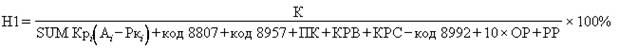 величина кредитного риска по активам, отраженным на балансовых счетах бухгалтерского учета (активы Аiза вычетом сформированных резервов на возможные потери и резервов на возможные потери по ссудам, по ссудной и приравненной к ней задолженности, взвешенные по уровню рискаPкi);