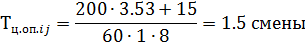 6. Строим стандарт-план ПЗУ. Для этого рассчитываем длительность операционного цикла партии деталей j-го наименования (Тц.оп.ij) по формулу (2.15) и полученные результаты сводим в таблицу (табл. 2.6). например, для А по первой (токарной) операции: