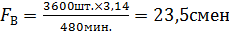 5. Количество деталей, выпускаемых за период оборота линии, равный одной смене, можно определить по формуле:
