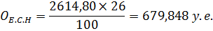 Отчисления на социальные нужды в размере установленного норматива (НE.C.H = 26%) для примера 2.2 составят 187,2 у.е.