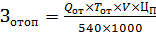 Для примера 2.2 затраты на отопление при изготовлении планового выпуска составят: